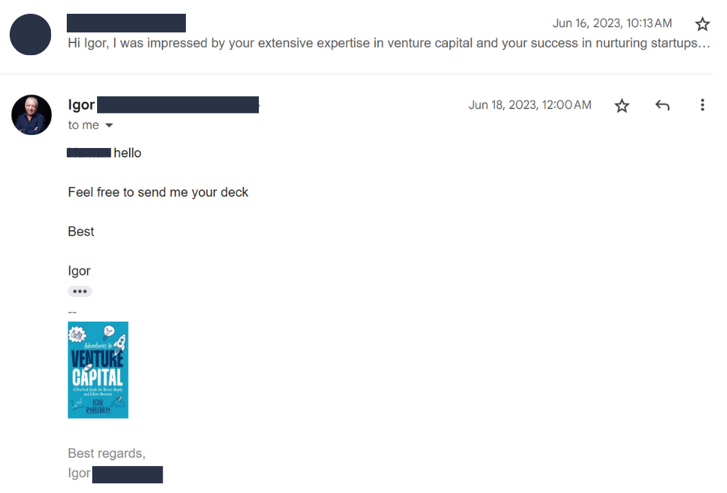Shift from conventional methods and double your conversion from replies to scheduled investor meetings.